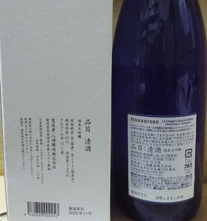 - [名称] 純米大吟醸720ml(2025world series)チャンピオンズ記念ラベル